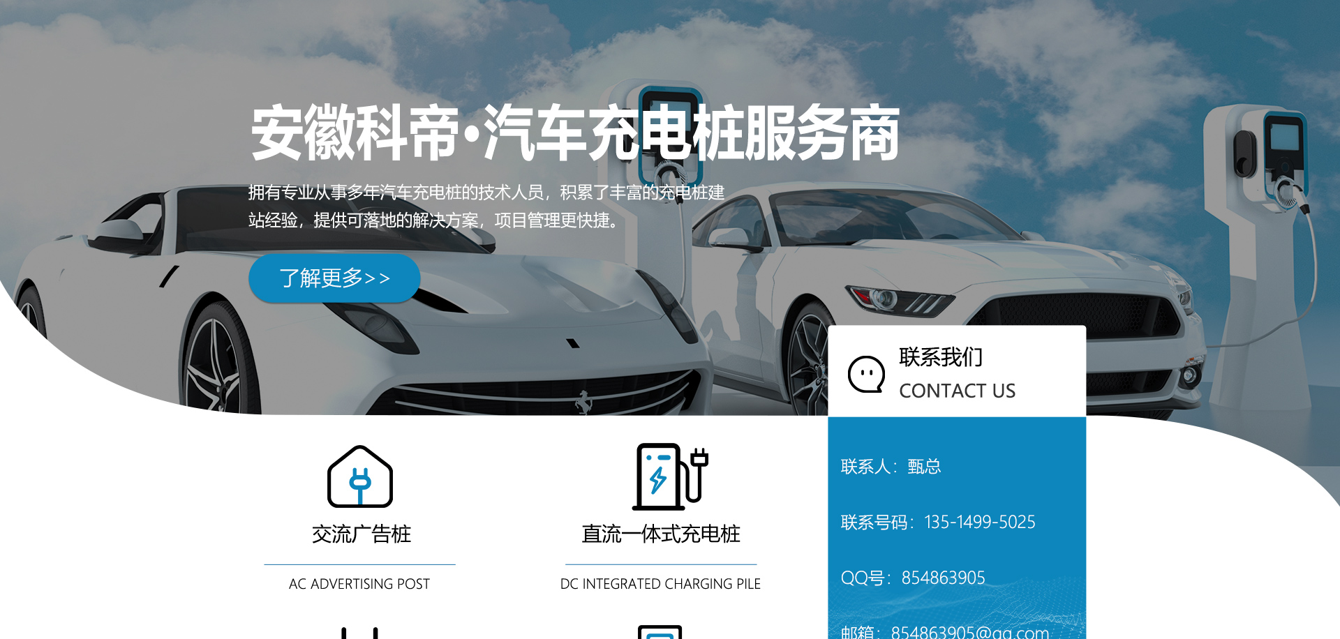 關(guān)于我們安徽科帝新能源科技有限公司坐落于安徽省會(huì)-合肥,是一家研發(fā)、生產(chǎn)智能充電樁設(shè)備,汽車(chē)充電站后臺(tái)監(jiān)控管理系統(tǒng)和生產(chǎn)高壓開(kāi)關(guān)設(shè)備的企業(yè).由專(zhuān)門(mén)的研發(fā)團(tuán)隊(duì)、管理團(tuán)隊(duì)按照現(xiàn)代化企業(yè)制度規(guī)范設(shè)立的有限責(zé)任公司。致力于為能源智能、安全的應(yīng)用和節(jié)能減排提供整體的技術(shù)與產(chǎn)品解決方案。科帝集研發(fā)、設(shè)計(jì)、生產(chǎn)、銷(xiāo)售以及服務(wù)于一體,在電動(dòng)汽車(chē)充電方案,充電設(shè)施建設(shè)和城市配電方面擁有廣泛的技術(shù)研究及經(jīng)驗(yàn)積累,為客戶(hù)提供安全、智能的充電設(shè)備及充電運(yùn)營(yíng)站建設(shè)一體化解決方案。并堅(jiān)持以人為本、質(zhì)量為先、顧客至上、不斷創(chuàng)新”的企業(yè)理念,為能源行業(yè)的發(fā)展、節(jié)能減排做出重大的貢獻(xiàn)。公司擁有豐富的產(chǎn)品種類(lèi),目前科帝已研發(fā)生產(chǎn)了三十多種產(chǎn)品,充電設(shè)備有直流一體式充電樁、直流分體式充電樁、直流廣告樁、交流廣告樁、廣告一體樁、壁掛交直流樁;等多種充電設(shè)備;每一款產(chǎn)品都是精心打造,力求為客戶(hù)提供優(yōu)越的用戶(hù)體驗(yàn)。展望未來(lái)科帝將通過(guò)持續(xù)的自...